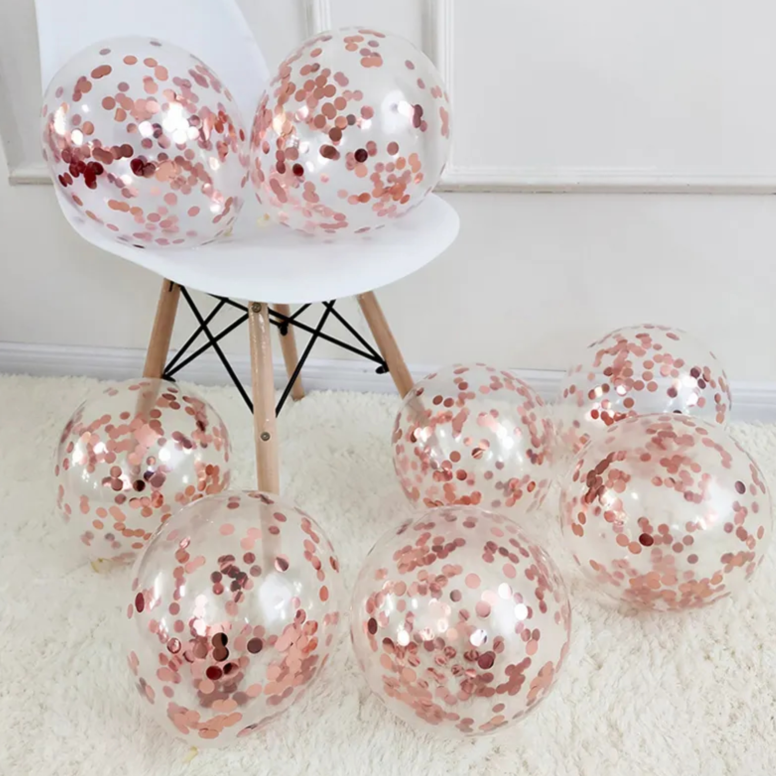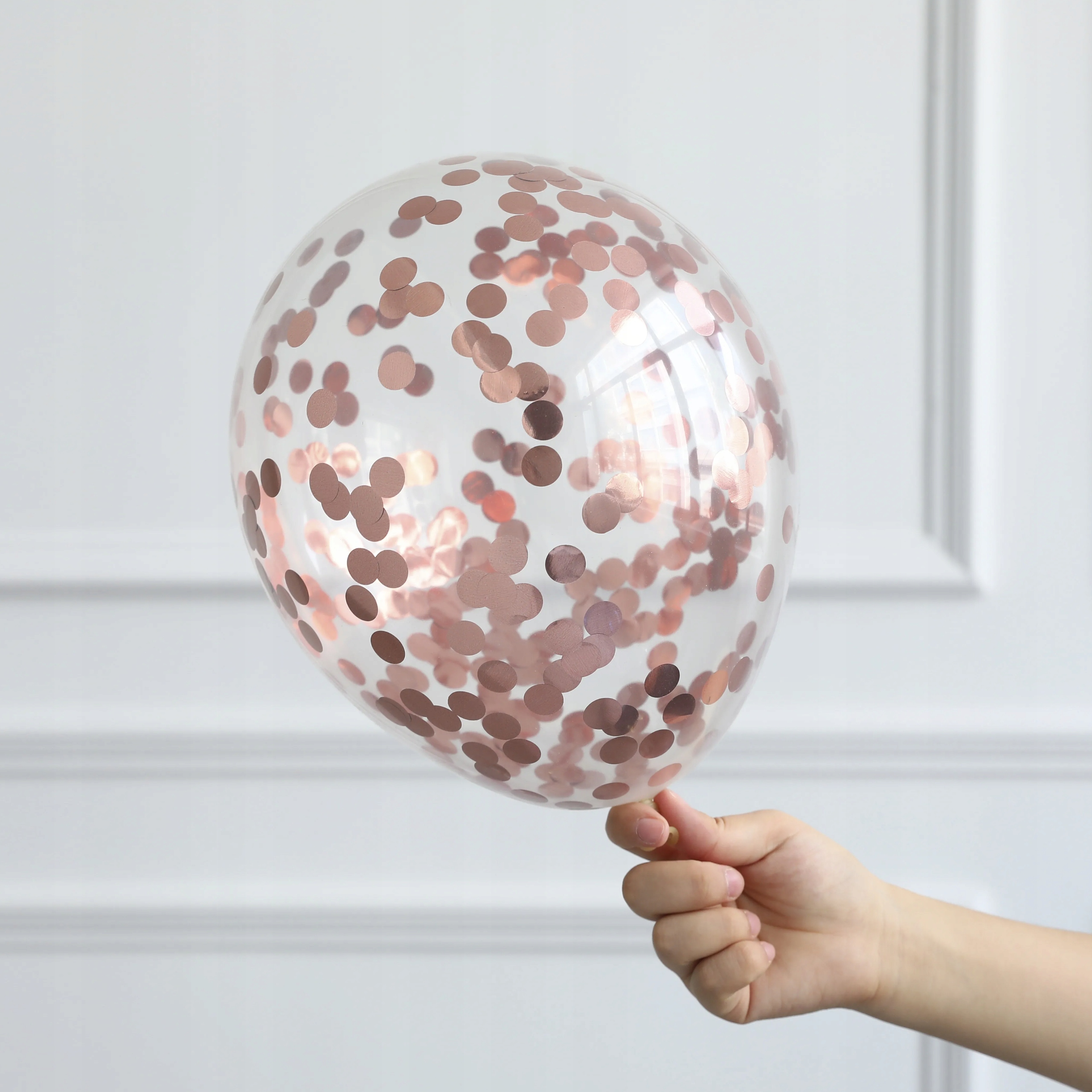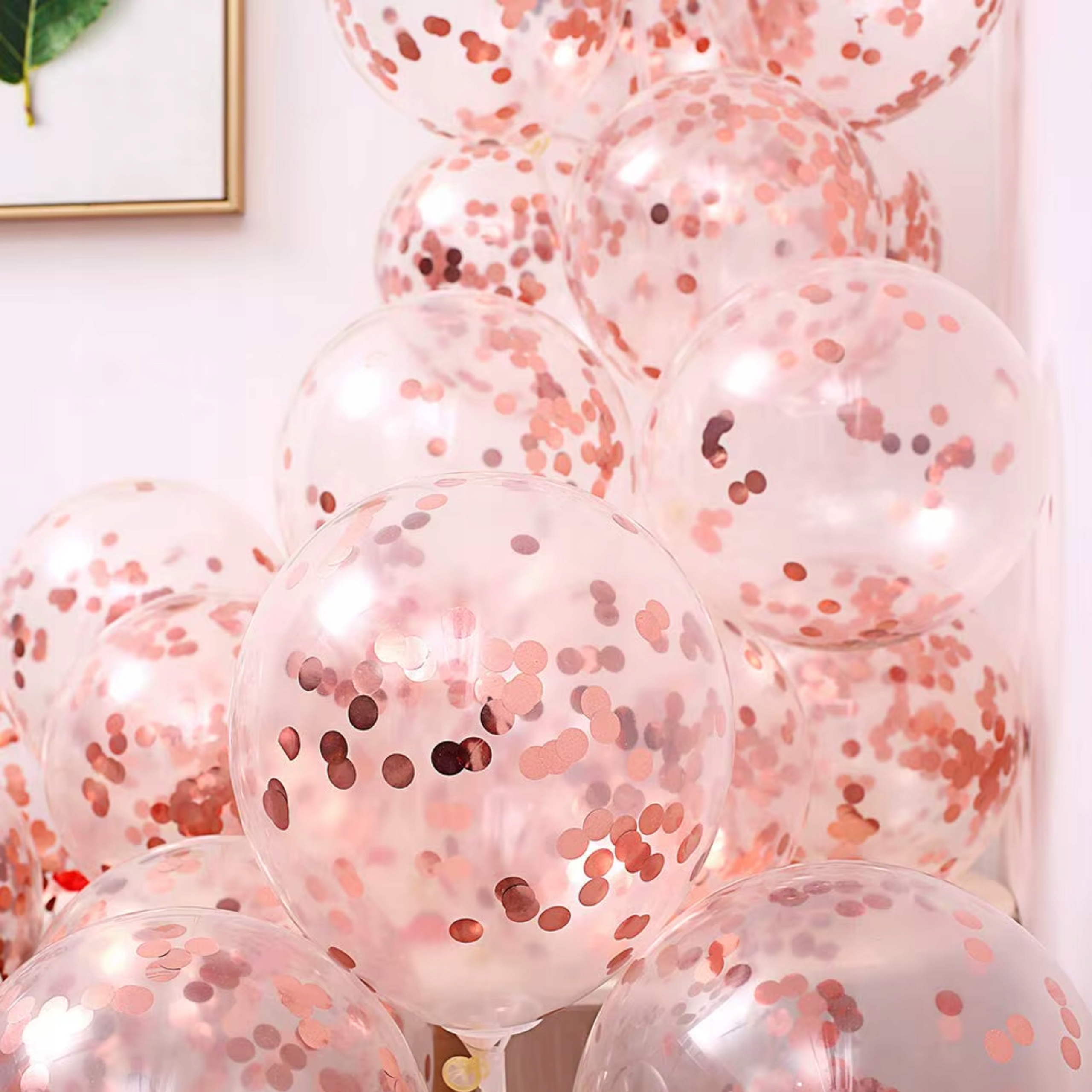 ✅ZESTAW BALONÓW Z KONFETTI – RÓŻOWE ZŁOTO – 115 SZTUK